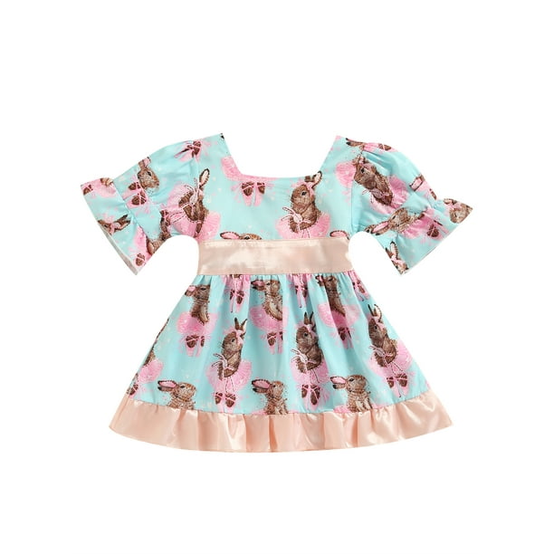 Biayxms Kid Baby Girl Summer Dress Rabbit Embroidery Pattern Puff Short Sleeve Square Neck A Line Dress Walmart Com