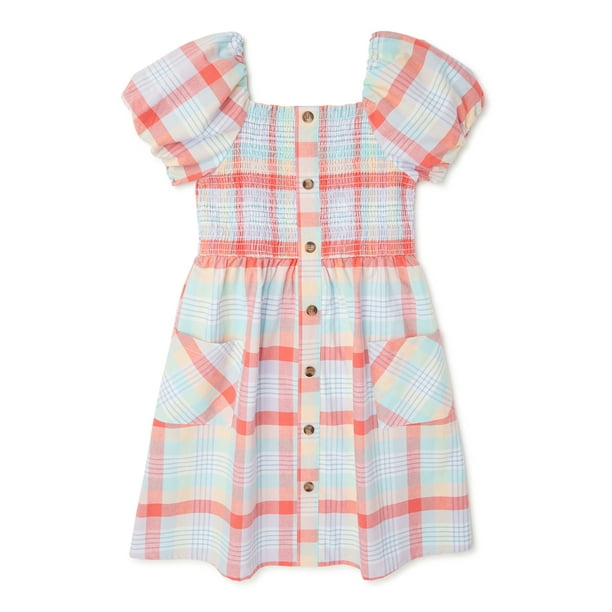 Wonder Nation Girls Puff Sleeve Dress Sizes 4 18 Plus Walmart Com